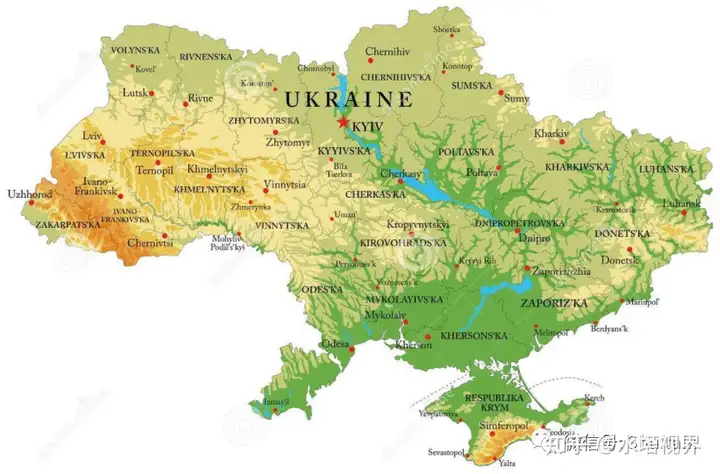 乌克兰靠近俄罗斯一侧更多的是平原,西边是山地。